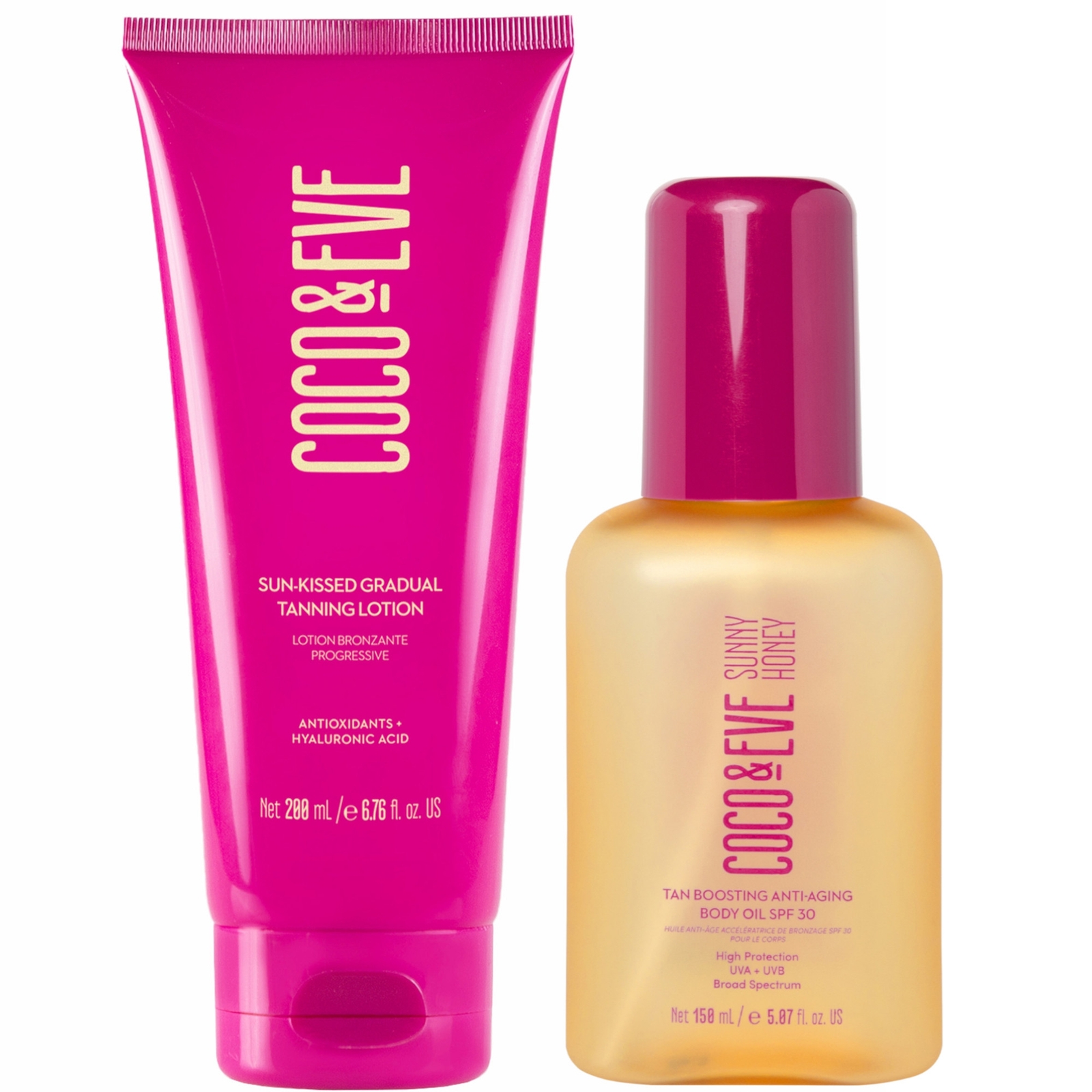 Coco & Eve Sun-Kissed Gradual Tanning Lotion and Tan Boosting Anti-Aging Body Oil SPF30 Bundle