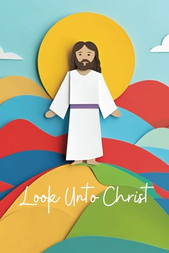 Inspirational Notebook: Look Unto Christ | 2025 LDS Youth Theme | Cute Cut Paper Jesus in Front of Sun and on a Colorful Mountain | Red, blue, purple, ... ruled | 6 X 9 | For teens, adults, children