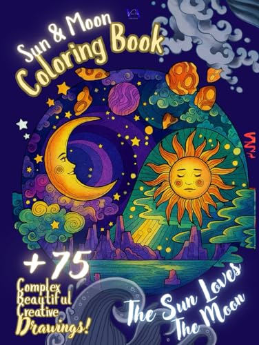 Sun and Moon Coloring Book; Sun Loves the Moon: +75 Complex Beautiful Creative Drawings!: for Adults & Kids: Designs for Relaxation, Stress Relief and Mindfulness