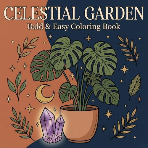 CELESTIAL GARDEN: Bold and Easy Coloring Book – Mystical Moon Phases, Boho Plants, Crystals, and Sun Patterns for Spiritual Stress Relief