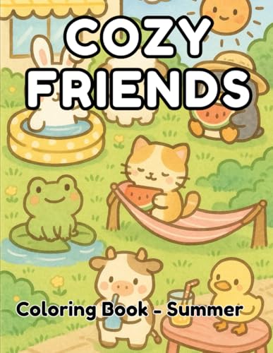 Cozy Friends Coloring Book Summer: 40 Images | 8.5x11 | Calm Scenes, Self Care, Cute Animals, Beach, Sun | Mindful Coloring and Stress Relief | Kids, Teens, Adults, Seniors