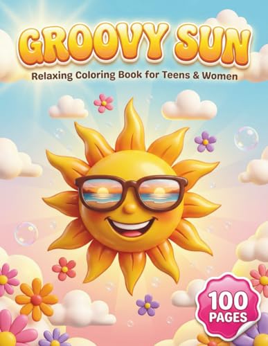 Groovy Sun: Relaxing Coloring Book for Teens and Women with 100 Pages featuring Radiant Sun Faces, Retro Summer Scenes, and Groovy Patterns for Stress Relief