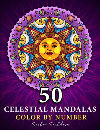 50 Celestial Mandalas: Color by Number Coloring Book for Adults features Stars, Moon, Sun, Planets and Constellations for Stress Relief and Relaxation
