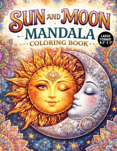 Sun & Moon Celestial Mandala Coloring Book: 60 Intricate Celestial Mandala Designs Featuring Sun, Moon & Stars for Stress Relief and Mindful Coloring (Single-Sided Pages, 8.5" x 11")