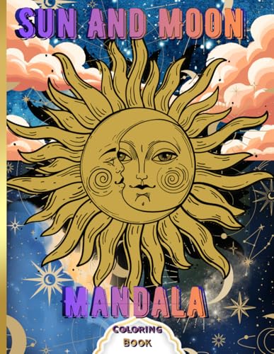 Sun and Moon Mandala Coloring. Book Stress Relief and Relaxing Mandala Coloring Book: for Adults and Teens with Sun & Moon Patterns, Zodiac Mandalas, Mazes, Sudoku, and Word Search Puzzles
