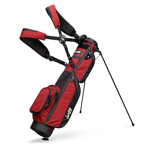 Sunday Golf Loma XL väska – lätt väska med rem och stativ – lätt att bära pitch n Putt golfväska – par 3 och verkställande kurser, 1,5 kg (vinröd)