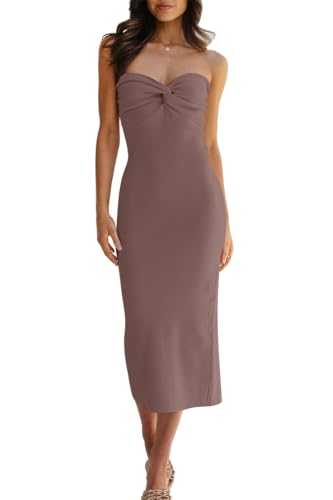 LILLUSORY Womens Bodycon Maxi Dresses 2025 Spring Fashion Summer Casual Long Elegant Classy Sundress Sun Beach Vacation Resort Wear Midi Cocktail Wedding Guest Sexy Party Outfits Clothes Brown