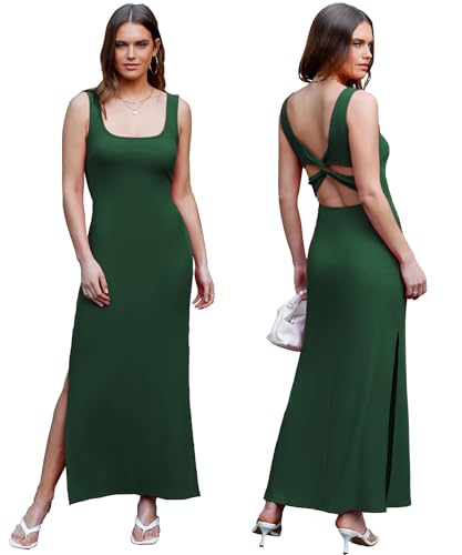 ALENDA DANMOS Women's Elegant Backless Maxi Dress Sexy High Sides Slit Tank Dress Twist Back Casual Sundress 72122(X-Small,Green)