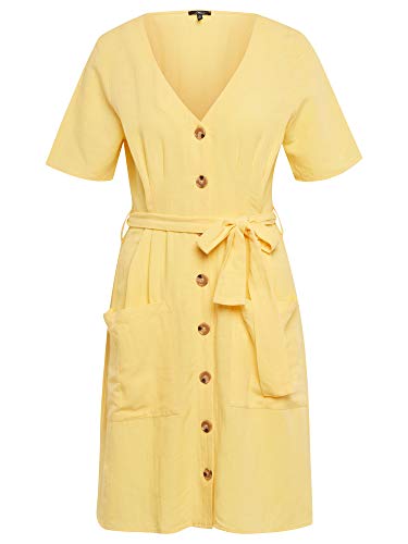 WEACZZY Summer Dress for Women Casual Short Sleeve Sundress Wrap V-Neck Party Dress with Pockets,Floral Sunflower White,XXL