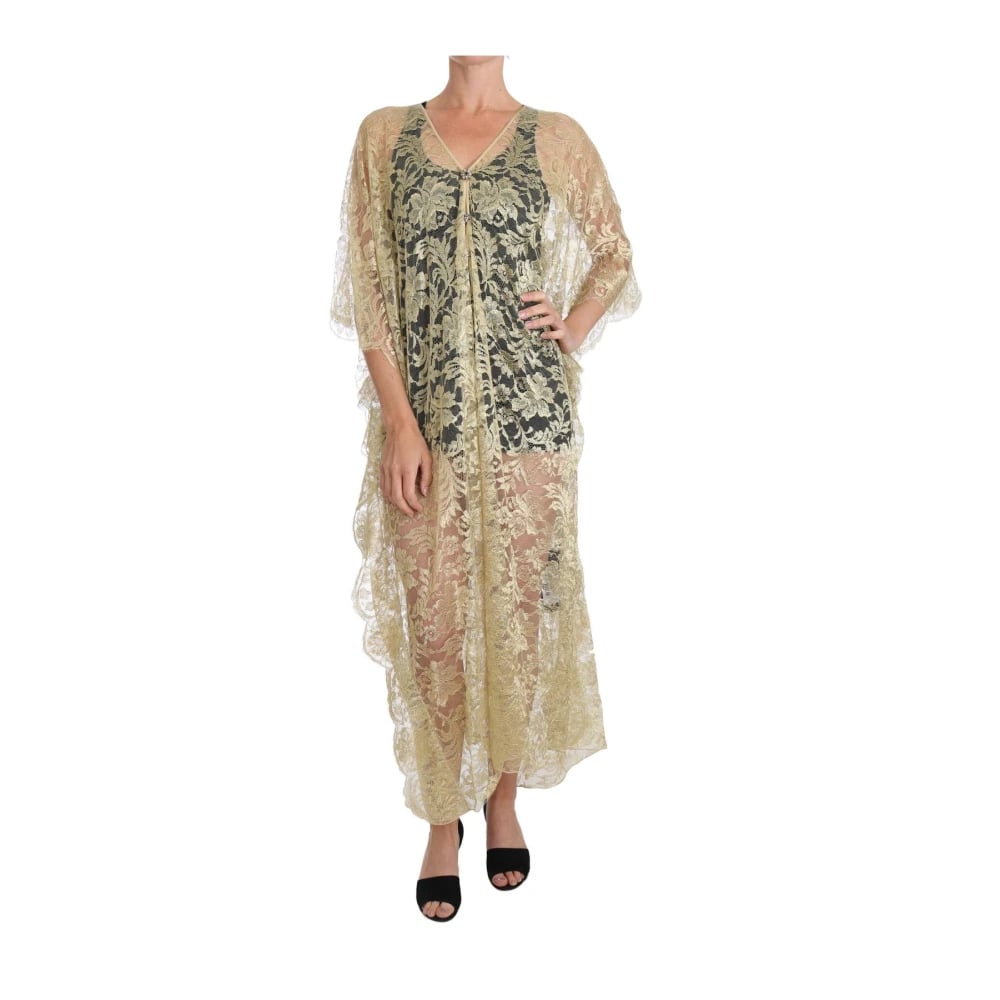 Dolce & Gabbana, Klänningar , Dam, 3Xs, Nylon, Blommig Spets Kaftan Sundress Tunika Cape
