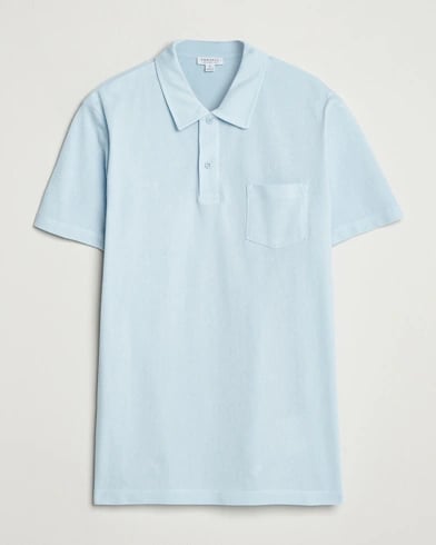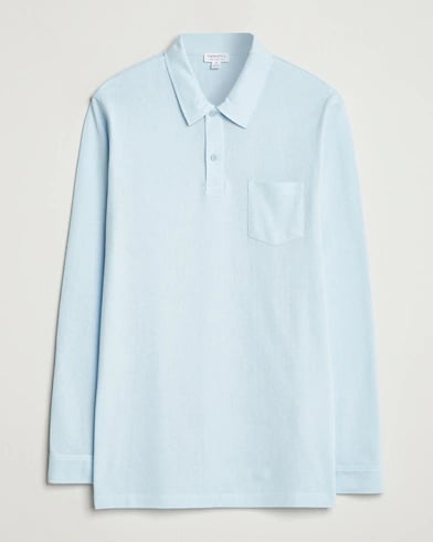 Sunspel Long Sleeve Riviera Polo Shirt Frost Blue