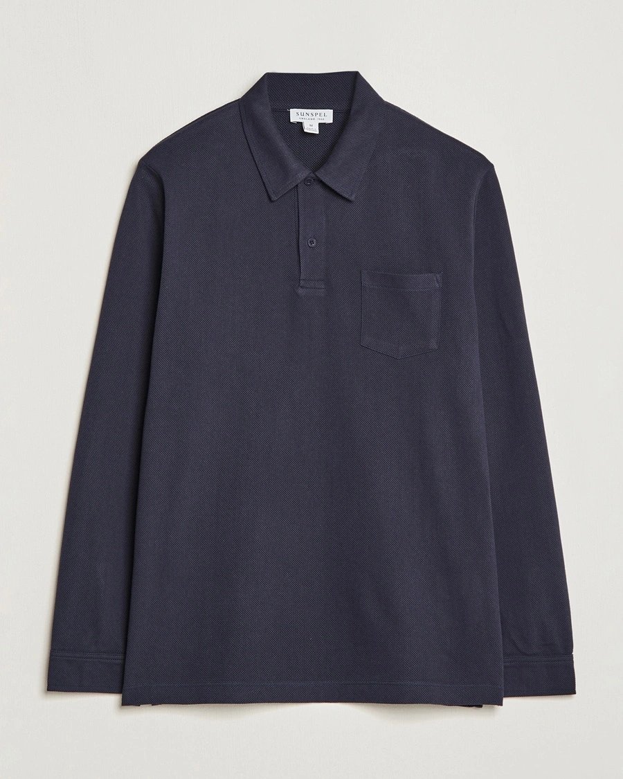 Sunspel Long Sleeve Riviera Polo Shirt Navy