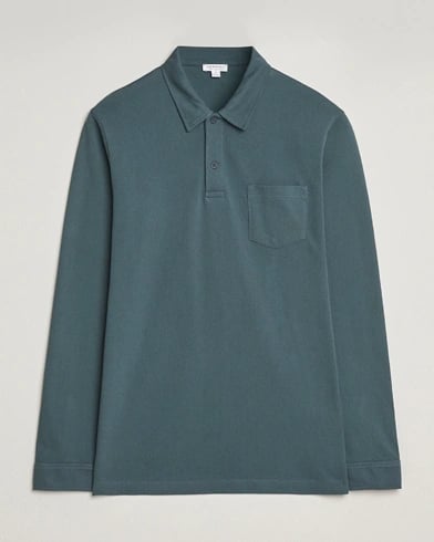 Sunspel Long Sleeve Riviera Polo Shirt Dark Petrol