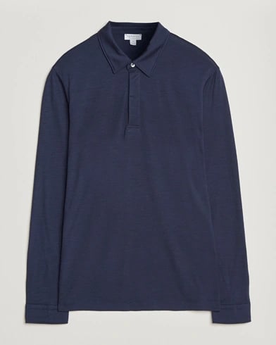 Sunspel Wool Jersey Long Sleeve Polo Navy
