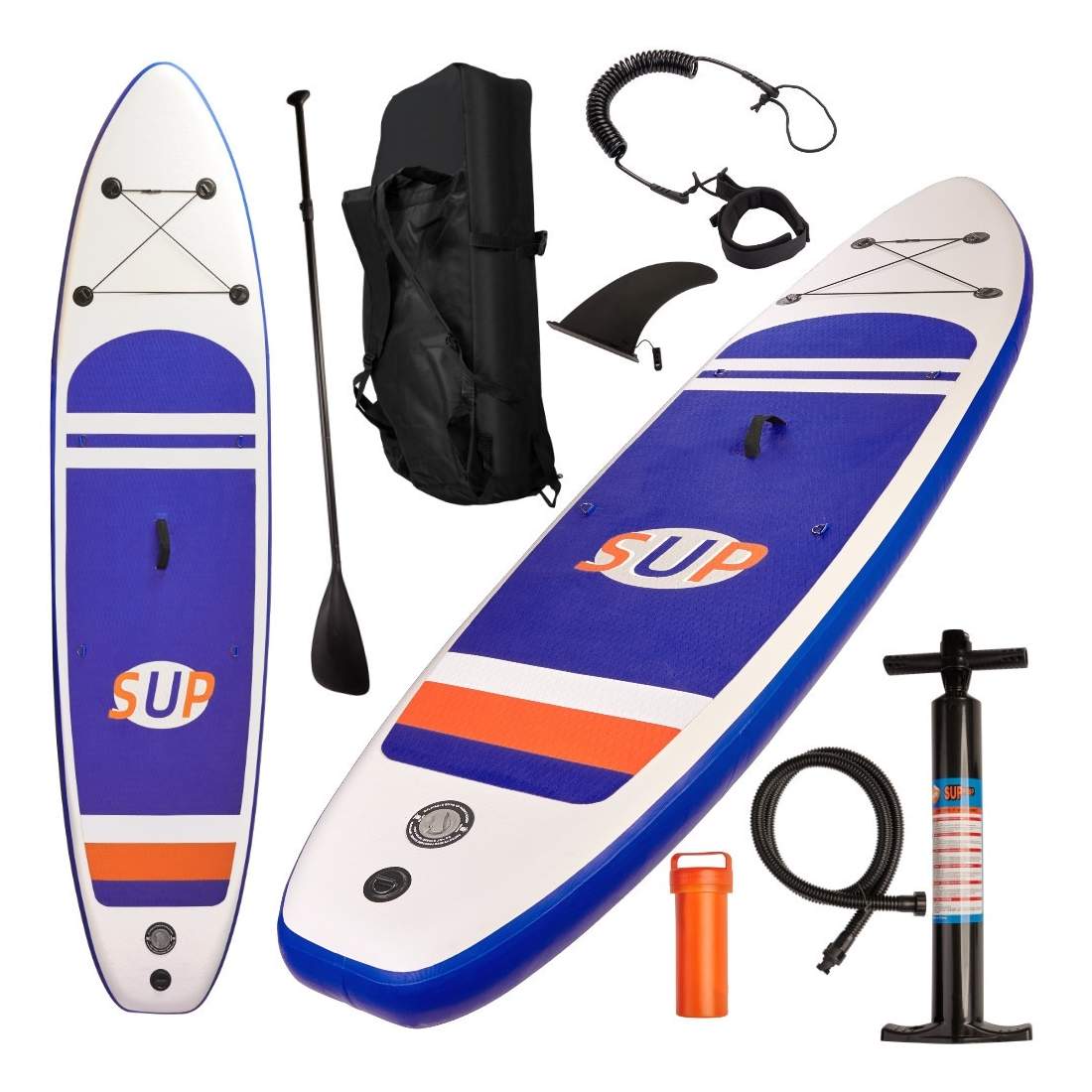 Skiffo Stand Up Paddle uppblåsbar sol Cruise 10'2 Sup 2-PB-SSC102C-Dropstitch-bräda med dubbla lager samman med paddelpaket, Leash, pump och bärväska -284l-310 x 84 x 15 cm vuxen unisex, blå