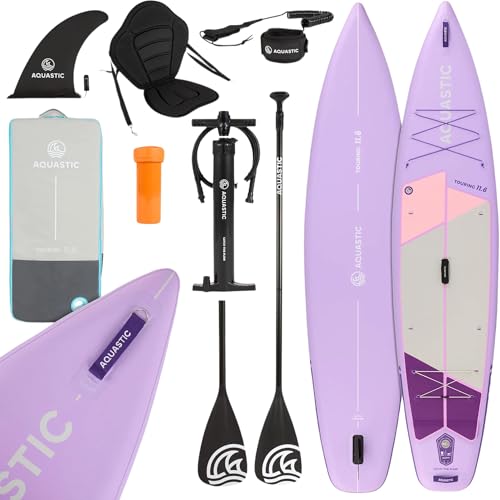 AQUASTIC Touring 11 '6 tum uppblåsbar SUP-bräda | Drop Stitch Lite + Single Layer Construction | 350 × 79 × 15 cm | 330 L förskjutning | Max. belastning 130 kg | D-ringar för kajaksäte