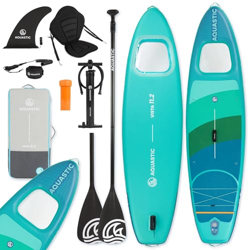 AQUASTIC Vista 11 tum 2 tum uppblåsbar SUP-bräda | allround form | Drop Stitch LITE | 340 × 89 × 15 cm – 340 l förskjutning | max. belastning 150 kg | undervattensfönster | Slide-In Stand Up Pad