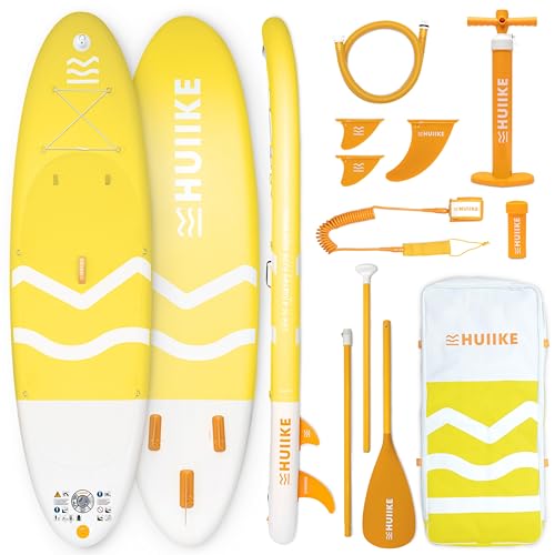 HUIIKE Stand Up Paddle Board för Vuxna med Tillbehör - Paddel, Fenor, Pump. Uppblåsbar Sup-bräda Utmärkt Stabilitet och Hållbarhet. 305 x 84 x 15 cm, 130 kg (Enjoyer Yellow - Full Pack)