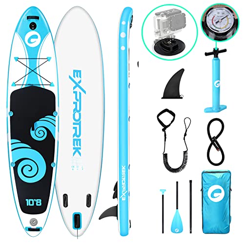 Exprotrek SUP-bräda, Uppblåsbar SUP-bräda, Set för SUP-bräda, 6 tum tjock för alla kunskapsnivåer med paddel och kompletta tillbehör (200KG MAX)