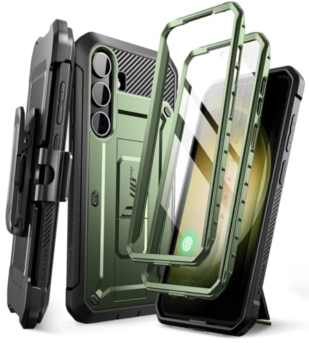 SUPCASE Utomhusfodral för Samsung Galaxy S21 FE 5G (6,4 tum), mobiltelefonfodral, stötskydd, 360 graders skyddsfodral, [Unicorn Beetle Pro] med integrerat skärmskydd och stativ (Grön)