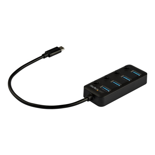 StarTech.com 4 Port USB C Hub, USB-C to 4x USB 3.0 Type-A Ports with Individual On/Off Port Switches, SuperSpeed 5Gbps USB 3.1/3.2 Gen 1, USB Bus Powered, Portable, 10" Attached Cable - Windows/macOS/Linux (HB30C4AIB) - hubb - 4 portar