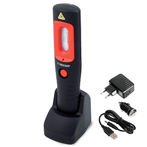 Velamp LED Inspection Light, Rechargeable. Super Bright 300lm Lantern with Charging Base. Multifunction. with Magnet and Hook. Waterproof and Robust, 3 W, Black