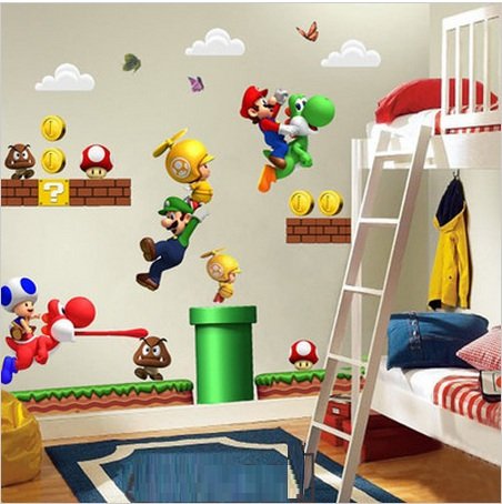 Nya Super Mario Bros avtagbara väggklistermärken, klistermärken barn, heminredning