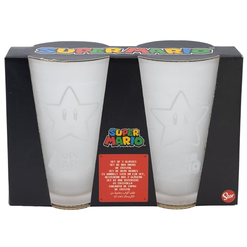 Set med 2 490 ml kristallvattenglas Super Mario