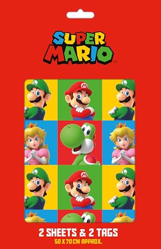 Super Mario-omslagspapper 2 ark 2 taggar födelsedag present inslagning