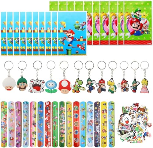 HhBdy 98 stycken Super Ma-rio presentpåsar barnfödelse med 50 barn klistermärken 12 nyckelringar barn 20 sup-väska 16 Clap Bracelets gästpresenter set party present leksak födelsedagspresent