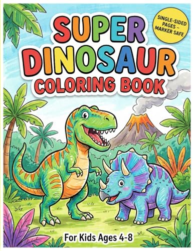 Super Dinosaur Coloring Book: 50+ Fun and Big Dinosaur Illustrations for Kids Ages 4-8 | Educational Prehistoric Activity Book with T-Rex, Triceratops, and More (Marker Safe Single-Sided Pages)