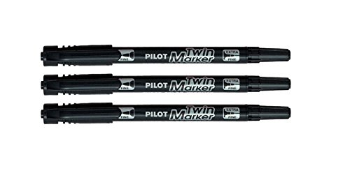 Pilot Super Colour Twin Tip Marker Permanent Black Ink Fine/Extra Fine Tip (förpackning med 3)