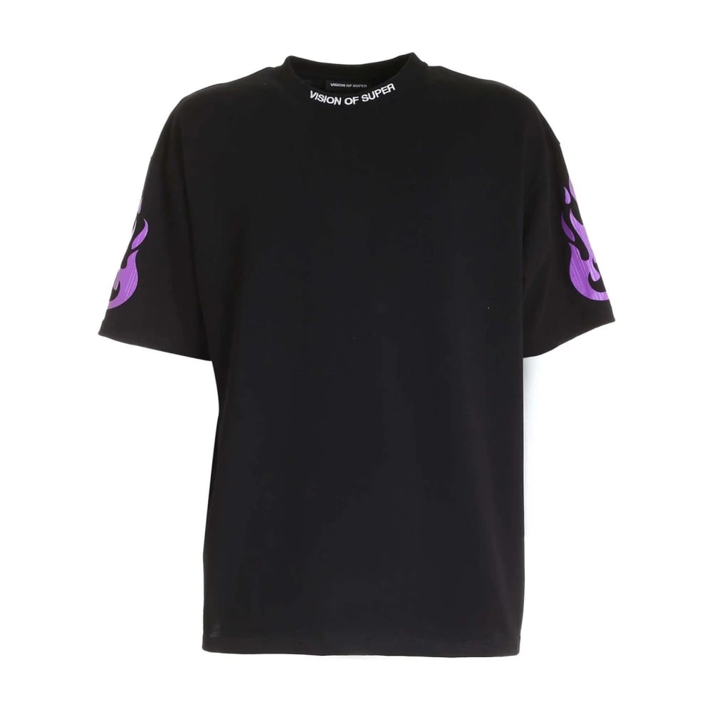Vision OF Super, Toppar , Herr, L, Bomull, Flames Logo T-shirt Svart/Lila