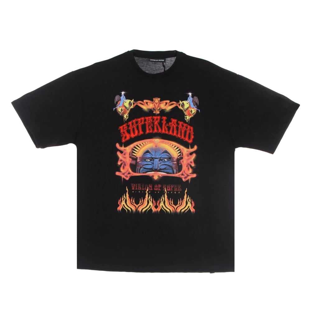 Vision OF Super, Toppar , Herr, S, Bomull, Svart Flamme Oversized Bomull T-shirt