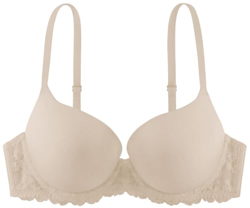 Dorina Super Push up-bh för kvinnor med bygel, formbygel och spets T-shirt, bh, Claire, vit, beige, svart, svart, 70D