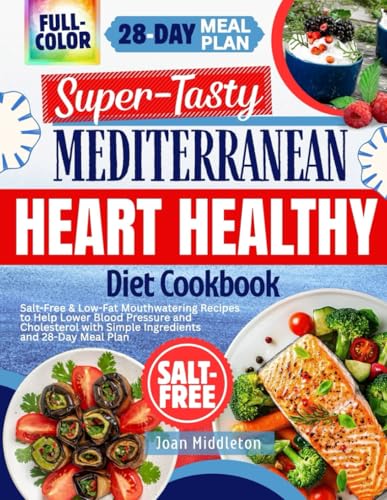 Super-Tasty Mediterranean Heart Healthy Diet Cookbook: Salt-Free & Low-Fat Mouthwatering Recipes to Help Lower Blood Pressure and Cholesterol with Simple Ingredients and 28-Day Meal Plan