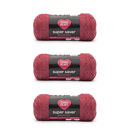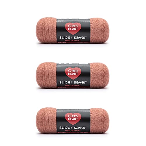Red Heart Super Saver borstad 3-pack med 142 g/5 oz-akryl-#4 mediumstickning/virkgarn, lera 3