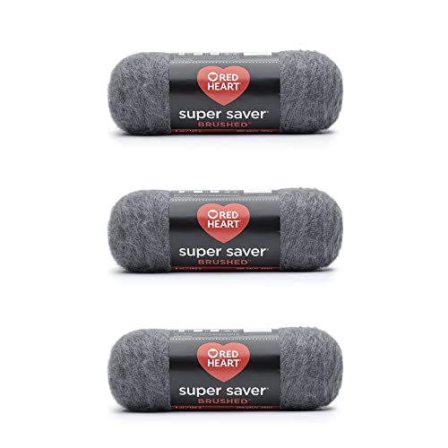Red Heart Super Saver Brushed Garn, 3-pack, 140 g, akryl, tjocklek 4 medium (worsted), 233 meter, för stickning och virkning, gråblå (Shale)