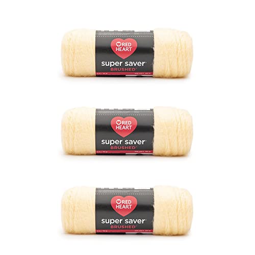 Red Heart Super Saver Brushed Garn, 3-pack, 140 g, akryl, tjocklek 4 medium (worsted), 233 meter, för stickning och virkning, ljusgul (Whipped Butter)