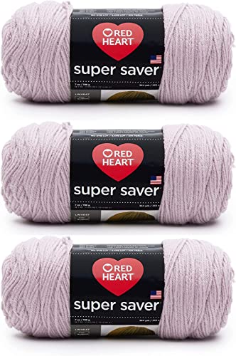 Red Heart Super Saver-garn, 3-pack, 198 gram (7 uns), akryl, tjocklek 4 medium (worsted), 333 meter, för stickning och virkning, lila (Pale Plum)