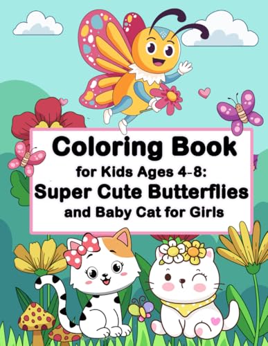 Coloring Book for Kids Ages 4–8: Super Cute Butterflies and Baby Cats: Fun and Easy Coloring Pages for Girls Featuring Adorable Kittens, Beautiful Butterflies, and Simple Designs to Spark Creativity