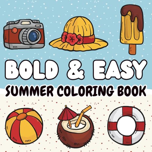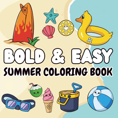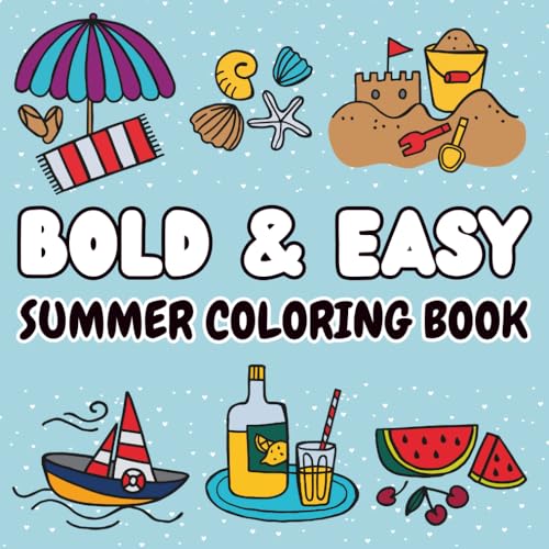 Bold and Easy Summer Coloring Book: 55 Fun & Super Cutie, Cozy, Relaxing & Stress Relief Coloring Pages for Kids & Children, Adults and Teens