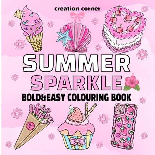 Summer Sparkle: Bold and Easy Colouring Book for Adults, Teens, Seniors and Children Featuring Super Cute Summer Designs.