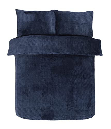 Sleepdown Våffla teddy fleece marinblå varm och mysig vändbart mjukt påslakan täcke sängkläder set med örngott – super kung (260 cm x 220 cm), polyester