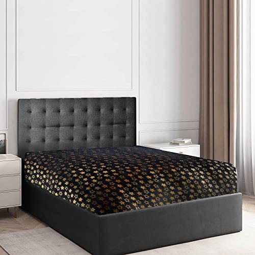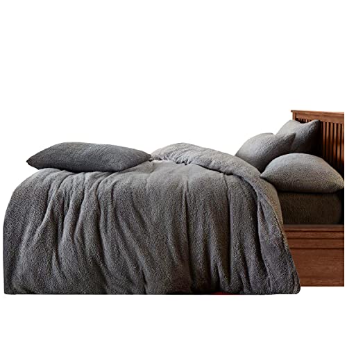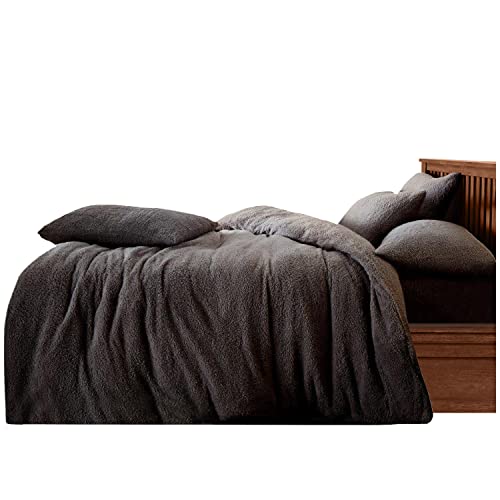 GC GAVENO CAVAILIA Teddy Fleece Star Folie påslakanset Super Mjuk Fluffig Mysig Varm Glänsande Sängkläder och Sänglakan, 2 delar Lättskött Täcke & Djupt Elastiskt Band Sängkläder, Träkol, King