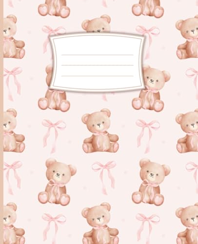 Notebook: Super Cute Aesthetic Composition Notebook Pink Bow & Teddy Bear | Teddy Bears Notebook - Ruled Pages