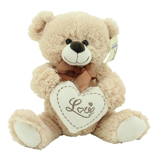 Sweety Toys 3877 Teddy Cuddly Bear Plysch Hjärta Bear Kärlek Super Söt Med Hjärta Hög kvalitet Broderi ”Kärlek” Beige/Brun