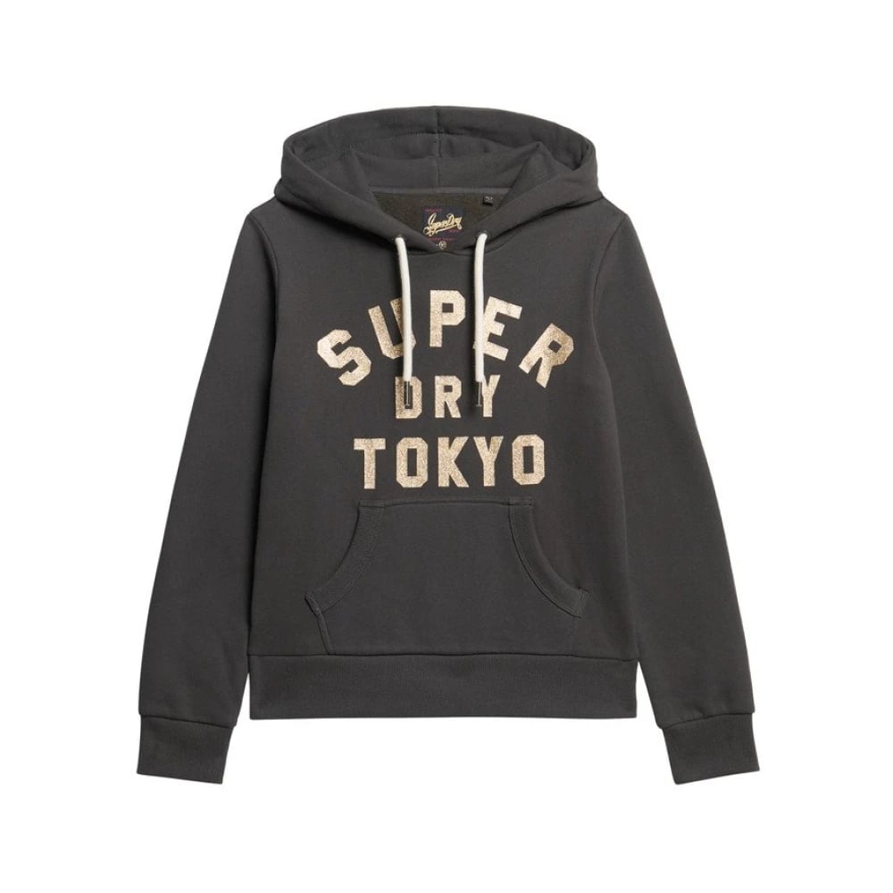 Superdry, Sweatshirts & Hoodies , Dam, M, Glitter Grafiskt Logotyp Hoodie Svart