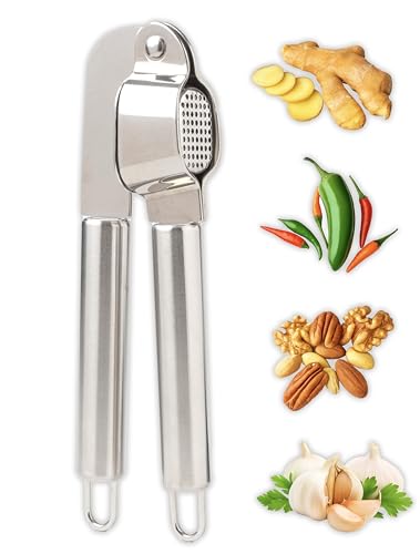 IPEA Vitlökspress i rostfritt stål för vitlök, ingefära, chili - superfast - elegant design - professionell vitlökspress för att pressa nötter och mat - kross - enkel att rengöra