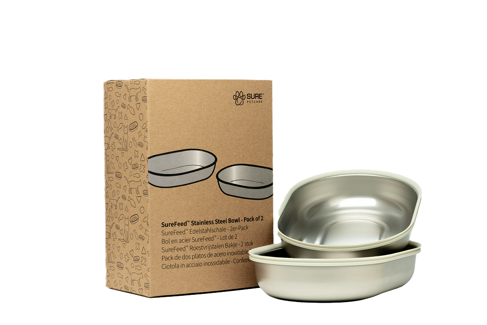SureFeed Skålar av Rostfritt Stål, Silver, Paket med 2